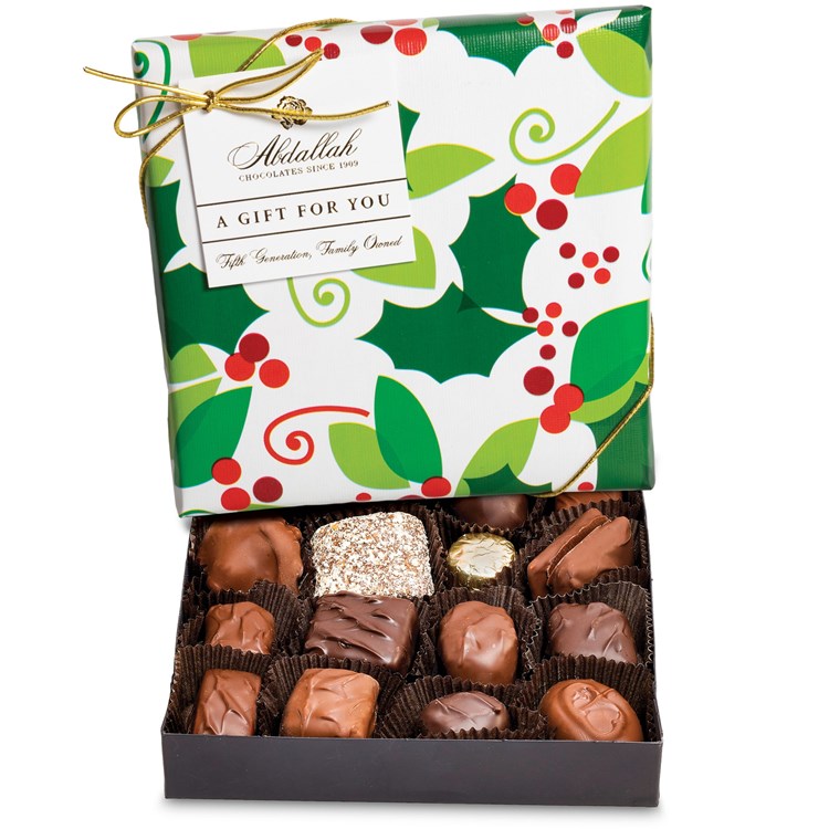 This beautifully gift wrapped box makes the perfect gift. Make someone’s day with assorted milk and dark chocolate confections. 8 oz.
